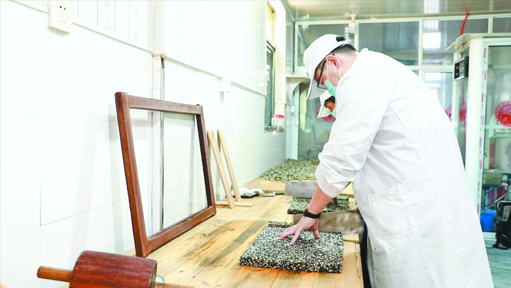 冬日里,走進廿三里街道李宅村,空氣中彌漫著紅糖混合各種谷物的香氣——這是義烏麻糖特有的香氣,也是李宅的甜蜜味道。李宅麻糖已有六七十年的歷史,每年重陽節(jié)后到春節(jié)前這段時間,李宅村家家戶戶都會制作麻糖,其中一部分村民則專門從事麻糖制作銷售工作。如今,隨著包裝技術和快遞物流的不斷發(fā)展,李宅麻糖借著電商網(wǎng)絡,走向全國各地,銷售收入不斷增長,去年達到了近600萬元,成了真正的富民產(chǎn)業(yè)。 在李宅村主街兩邊,隨處可見制作、銷售麻糖的商店,村民陳榮貴經(jīng)營的麻糖作坊也在其中。走進制作車間,陳榮貴和兒子陳宇穿著廚師服、戴著口罩,正忙著制作客戶定制的核桃仁芝麻小米糖。根據(jù)客戶的需求,陳宇將一定比例的核桃仁、小米、芝麻放入木桶中,澆上新鮮熬制的紅糖水,用木棍攪拌均勻后,趁熱倒進一旁臺板上的麻糖架里。陳榮貴趕緊拿起木碾子將其碾平,移開麻糖架后,父子倆合力開始切麻糖!扒新樘怯玫牡妒翘刂频牡毒,比一般的家用菜刀要大一倍,刀身更輕薄,便于快速切麻糖!标悩s貴介紹。隨著“喀嚓喀嚓”幾聲,原本成塊的大麻糖被切成可供銷售的小塊麻糖,等其自然冷卻,就可裝袋上架了。 “如今李宅麻糖已經(jīng)小有名氣,我們幾乎每天都要切500多斤的麻糖。等到12月份銷售旺季,更是每天都供不應求,有些老客戶甚至會提早一個月預訂!标悩s貴說,如今,麻糖除了傳統(tǒng)的小米、糯米等原材料,還加入了核桃仁、花生仁、地瓜干、玉米等配料,更有客戶別出心裁地要求加入葡萄干、紅綠干果絲等配料,品種多達幾十種!罢鎰e說,無論怎么搭配,口味都挺好! 當前,李宅村有十多家農戶專門從事麻糖加工銷售,在市場監(jiān)管局、廿三里街道的關心支持下,產(chǎn)業(yè)已初具規(guī)模!皬淖畛醯膬扇倚∽鞣唬l(fā)展到如今的麻糖加工產(chǎn)業(yè),我們怎么也沒想到,小小麻糖給我們帶來了巨大商機。最近,村兩委和街道、市場監(jiān)管局積極對接,希望能進一步發(fā)展麻糖加工產(chǎn)業(yè),讓李宅麻糖走上專業(yè)化、規(guī);⑵放苹牡缆,全力做好共同富裕文章。”李宅村委副主任范衛(wèi)東表示。 |