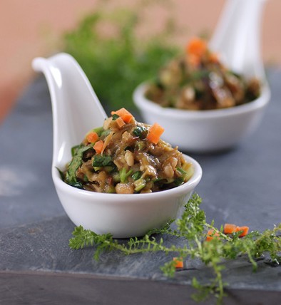 小貼士: 這道菜的關(guān)鍵在于要把烤好的辣椒碾碎成泥,如果方便,可以把香菜香蔥同樣都碾一下,味道會(huì)更好。 |