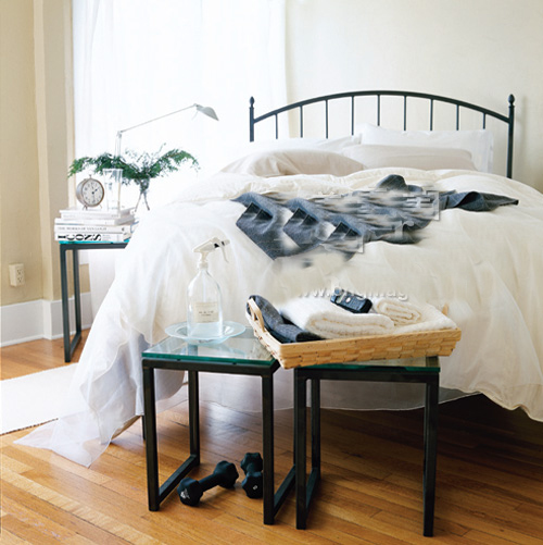 皚皚白雪是冬季獨(dú)有的景色,你可以將它搬入臥室,體會(huì)隆冬氛圍。白色的床蓋鋪出一片雪后風(fēng)光,給厚厚鴨絨被換上白色被罩,選擇沙土色的床單和枕套,最后鋪一塊白色的羊毛地毯增添溫暖。不要忘了在床頭幾上插幾株常青植物,來活躍這白色世界。