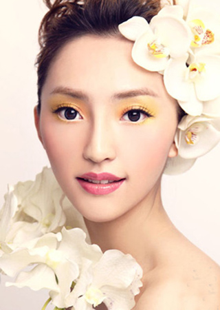 多朵白色鮮花簇擁而成一個龐大而華麗的花飾,新娘的發(fā)型干凈利落地盤起,簡潔為主。更好地突出了花飾的特色,也讓花飾對新娘臉型的修飾和陪襯更加迷人,尤顯楚楚動人。