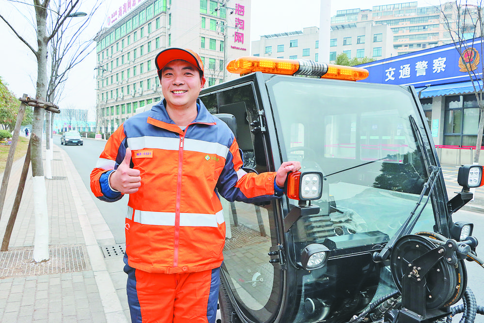 李道帥 路面清掃,垃圾撿拾,果皮箱擦拭……新年的第一天,李道帥像往常一樣在工作崗位上忙碌著。一套熟練的業(yè)務操作下來,由他負責的路面干凈清新。 這名“85后”河南小伙,是義烏的一名“老環(huán)衛(wèi)”,在人工保潔方面是一把好手,在機械化設備操作方面也不遜色,小型機掃車、垃圾收集車……這些他都能操作自如,哪里需要哪里上!敖衲陸撌歉森h(huán)衛(wèi)的第11年了,現(xiàn)在家人也都來到了義烏,準備在這里安家了!崩畹缼浶χf,去年有幸上了《義烏商報》,受到很多人關注,孩子們都說爸爸是他們的驕傲。 城市發(fā)展的步伐闊步向前,對文明程度和美好環(huán)境的要求會越來越高,作為環(huán)衛(wèi)工人寒來暑往,風里來雨里去,是城市中比較辛苦的職業(yè)。李道帥說:“作為年輕一代,我們不僅要傳承老一輩環(huán)衛(wèi)人吃苦耐勞的精神,還要緊跟行業(yè)發(fā)展努力學習新知識,把環(huán)境衛(wèi)生工作做好! “工作越來越好,城市越來越美……”新的一年,他希望家人身體康健、孩子天天向上! |