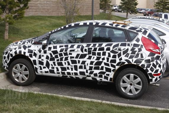 綜合海外媒體報(bào)道 繼備受歡迎的嘉年華掀背車/轎車的發(fā)布之后,這家美國(guó)汽車制造商看起來(lái)要憑借一款計(jì)劃在2012年推出的新車型來(lái)進(jìn)軍SUV市場(chǎng)。日前,海外媒體的諜照攝影師已經(jīng)拍到了福特嘉年華SUV進(jìn)行測(cè)試的諜照?qǐng)D片。從這些圖片來(lái)判斷,這款新車型的設(shè)計(jì)靈感看起來(lái)是源于福特的Kuga車型。