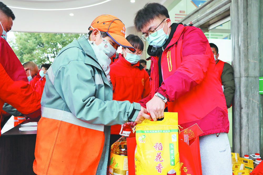 街頭巷尾,他們披星戴月,一把掃帚寫春秋;城市角落,他們甘守寸間,把公廁打理出家的溫馨;城鄉(xiāng)旮旯,他們迎來送往,與垃圾為伍……他們,就是這個(gè)城市的“美容師”,有一個(gè)共同的名字——環(huán)衛(wèi)工人。對(duì)這個(gè)群體來說,越是節(jié)假日就越忙,特別是春節(jié)期間,更要堅(jiān)守崗位。 這些年,每到春節(jié)前夕,義烏的相關(guān)公益協(xié)會(huì)和愛心人士都會(huì)為全市環(huán)衛(wèi)工人舉辦慈善年夜飯活動(dòng),這一傳統(tǒng)已經(jīng)延續(xù)了多年。1月26日,第九屆環(huán)衛(wèi)工人慈善年夜飯活動(dòng)暨2022年春節(jié)留義環(huán)衛(wèi)工人慰問活動(dòng),在市環(huán)境集團(tuán)啟動(dòng)。 據(jù)了解,此次活動(dòng)由市慈善總會(huì)、市總工會(huì)和團(tuán)市委共同主辦,市執(zhí)法局、環(huán)境集團(tuán)、民建基層委三支部協(xié)辦,執(zhí)行團(tuán)隊(duì)為義烏市愛心公社公益協(xié)會(huì)。受疫情等因素影響,從去年開始,該活動(dòng)一改往年聚在一起“吃年夜飯”的形式,轉(zhuǎn)為統(tǒng)一為留義環(huán)衛(wèi)工人發(fā)放“愛心年貨”。 “100塊錢的紅包,10斤大米,10斤油,還有幾十個(gè)口罩,都很實(shí)用,連年畫都有,考慮得真周到,太感謝了!”來自河南的邱師傅是環(huán)境集團(tuán)的一名普通清掃工,從志愿者手中接過沉甸甸的年貨,他兩只手都不得空,開心之情溢于言表。 據(jù)了解,成立兩年多的環(huán)境集團(tuán),現(xiàn)有一線環(huán)衛(wèi)工人2500多名,其中大部分來自河南、安徽等省份。為做好春節(jié)留人工作,環(huán)境集團(tuán)根據(jù)市里的工作部署和目標(biāo),及時(shí)研究,迅速行動(dòng),在前期實(shí)地走訪的基礎(chǔ)上,結(jié)合公司實(shí)際,推出多項(xiàng)舉措惠及留義過年的環(huán)衛(wèi)工人。 “義烏是個(gè)很有人情味的城市,政策好、福利多,對(duì)我們外地人也很友善,只要心中有,在哪兒都是過年!眮碜园不盏睦畲蠼阏f,自己和愛人都是清掃工,來義烏打拼多年,從當(dāng)初的不適應(yīng)到現(xiàn)在已習(xí)以為常,還在義烏安了家,孩子也在這邊上學(xué),挺好的。 據(jù)了解,為了盡快把“愛心年貨”發(fā)到留義的環(huán)衛(wèi)工人手里,組織方設(shè)立了多個(gè)領(lǐng)取點(diǎn),其中每個(gè)點(diǎn)上都有志愿者和工作人員為大家做好相關(guān)服務(wù)。 |