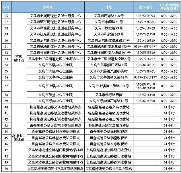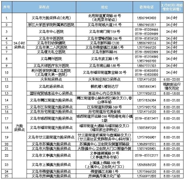 義烏市新冠病毒核酸檢測(cè)采樣點(diǎn)設(shè)置一覽表