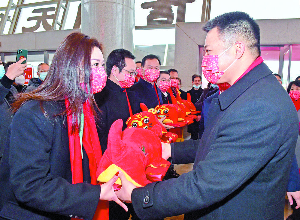 市 委書記王健為市場經(jīng)營戶送春聯(lián)。 市長葉幫銳為市場經(jīng)營戶送春聯(lián)。 醒獅點睛降祥瑞,鑼鼓齊鳴慶開市。在國際商貿(mào)城一區(qū)市場西大廳外,兩條舞龍威武挺立,王健和葉幫銳分別走上前,把朱砂點在龍的眼睛上,象征豐收、祥瑞的舞龍閃轉騰挪、活靈活現(xiàn),對新年寄予美好的祝福。隨后,市領導向商城集團公司負責人、市場經(jīng)營戶代表送上春聯(lián)和;ⅲT甘袌龇睒s興旺、經(jīng)營紅火。 和往年不同的是,今年市領導還在現(xiàn)場通過Chinagoods平臺開設的直播間,為經(jīng)營戶、采購商發(fā)放新春紅包。 開市儀式結束后,經(jīng)事前核酸檢測和智能閘機測溫后,市領導來到市場內(nèi),沿著街區(qū)給市場經(jīng)營戶送春聯(lián),向大伙拜年:“新年好!祝您生意興隆、財源廣進!” 一年之計始于春,節(jié)后開市的經(jīng)營戶們都想討個吉利,接到福氣,希望為新的一年帶來好運。有經(jīng)營戶拿到一副春聯(lián)不“滿足”,說自己有好幾間店鋪,每間都想貼上象征吉祥如意的春聯(lián);有的經(jīng)營戶直言要“財源廣進”的春聯(lián),希望新的一年生意能紅紅火火……幾句話引來了市場一片歡聲笑語,現(xiàn)場氣氛更加輕松熱烈。 雖然經(jīng)營戶們都戴著口罩,但大伙兒的眼神都洋溢著喜悅!澳銈儼l(fā)財,我們最高興。”在送祝福的同時,市領導不時詢問經(jīng)營戶去年的銷售情況、今年的訂單情況,為他們加油鼓勁,勉勵大家在新的一年中大干快干、實干干實,堅持誠信經(jīng)營,力爭開拓更大的市場。 雄獅歡騰,鑼鼓鏗鏘。象征生意紅火的吉祥祝福標語掛滿各大市場內(nèi)外,門前還有舞獅、舞龍助興,陣陣鑼鼓敲開義烏市場嶄新的一年。喜笑顏開的經(jīng)營戶們紛紛表示,新的一年要更加鼓足干勁,接續(xù)奮斗,讓義烏市場這塊金字招牌熠熠生輝,讓日子過得越來越好。 為確保市場安全、平穩(wěn)、有序,迎接全球客商,義烏對市場實行封閉式單元管理,確保廣大市場經(jīng)營戶及采購商安全進場。農(nóng)歷十二起,國際商貿(mào)城、進口孵化區(qū)、國際生產(chǎn)資料市場、國際家居城等全面開市。 |