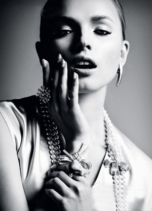魅惑的氣息氤氳在珍珠項(xiàng)鏈搖曳的光影下,圓潤(rùn)溫婉的柔和光澤襯托出容妝的簡(jiǎn)潔精致。