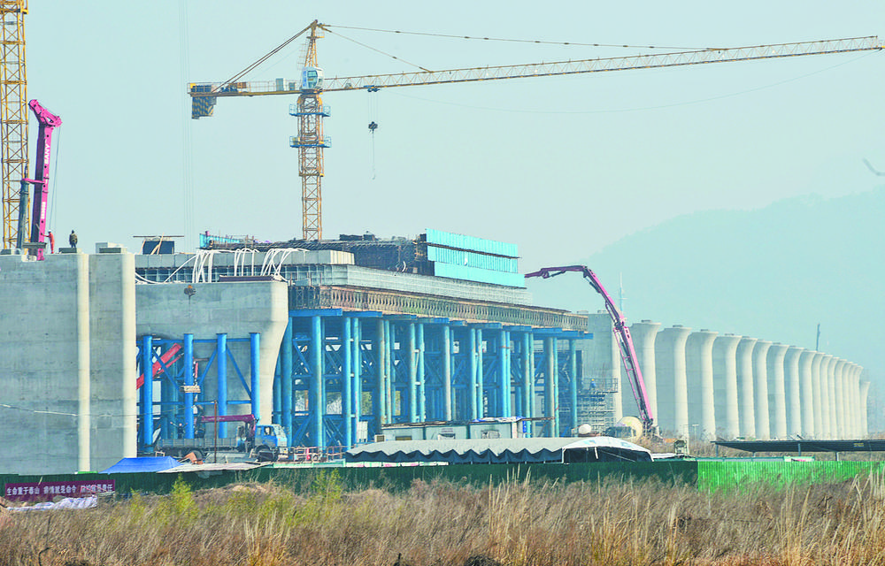 2月16日,省重點(diǎn)建設(shè)項(xiàng)目——新建杭州至溫州鐵路義烏至溫州段站前工程1標(biāo)跨義烏江特大橋建設(shè)現(xiàn)場(chǎng),工人們正加班加點(diǎn)進(jìn)行特大橋連續(xù)梁上部結(jié)構(gòu)和墩身施工及搭設(shè)鋼棧橋。項(xiàng)目自節(jié)后開工以來(lái),建設(shè)已步入正軌。 據(jù)悉,該項(xiàng)目起點(diǎn)位于義亭鎮(zhèn)仰科鄭村,終點(diǎn)位于江東街道金星村,橫跨義烏、東陽(yáng)兩市,涉及5個(gè)鎮(zhèn)街、27個(gè)行政村,正線全長(zhǎng)18.415公里。其中義烏特大橋?yàn)橹攸c(diǎn)工程,所在線路共設(shè)8聯(lián)多孔跨、特殊結(jié)構(gòu)連續(xù)梁。 |