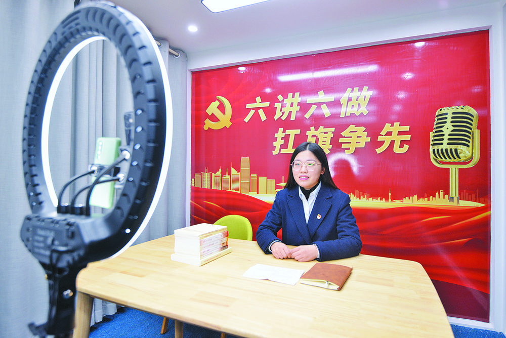 日前,在國際商貿(mào)城四區(qū)紅色直播間里,商城集團黨員通過直播的方式開展“六講六做 扛旗爭先”宣講。