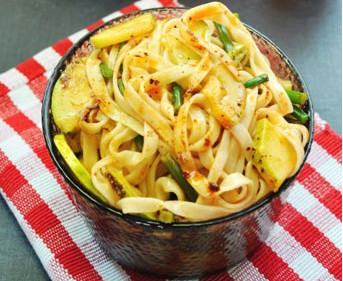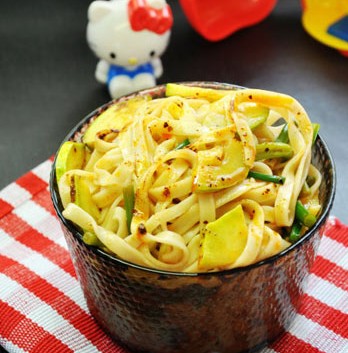 原料:面條、蕃瓜(西葫蘆)、青椒、韮苔、蔥、番茄醬。 炒菜的調(diào)料:鹽、雞精、生抽、糖。 涼面汁的調(diào)料:蒜、鹽、糖、生抽、香油、花椒粉、芥末油、蒸魚豉油、油潑辣子、醋。
