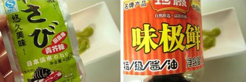蘸料二做法: 青芥辣少許,倒入味極鮮,少許香醋,拌勻即可。