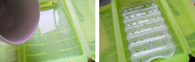 7、料理盒中加少許水; 8、鋪上蒸簾,水不要沒過蒸簾; 9、將腌制好的小排放到蒸簾上; 10、蓋上料理盒蓋,放入微波爐,高火加熱8分鐘; 11、取出料理盒,將排骨逐個翻面,再次放入微波爐,高火加熱6分鐘; 12、取出排骨,撒少許白芝麻,趁熱攪拌均勻即可。