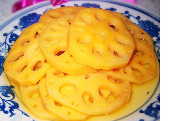 3 、把切好的藕片放入鍋內(nèi)焯水。