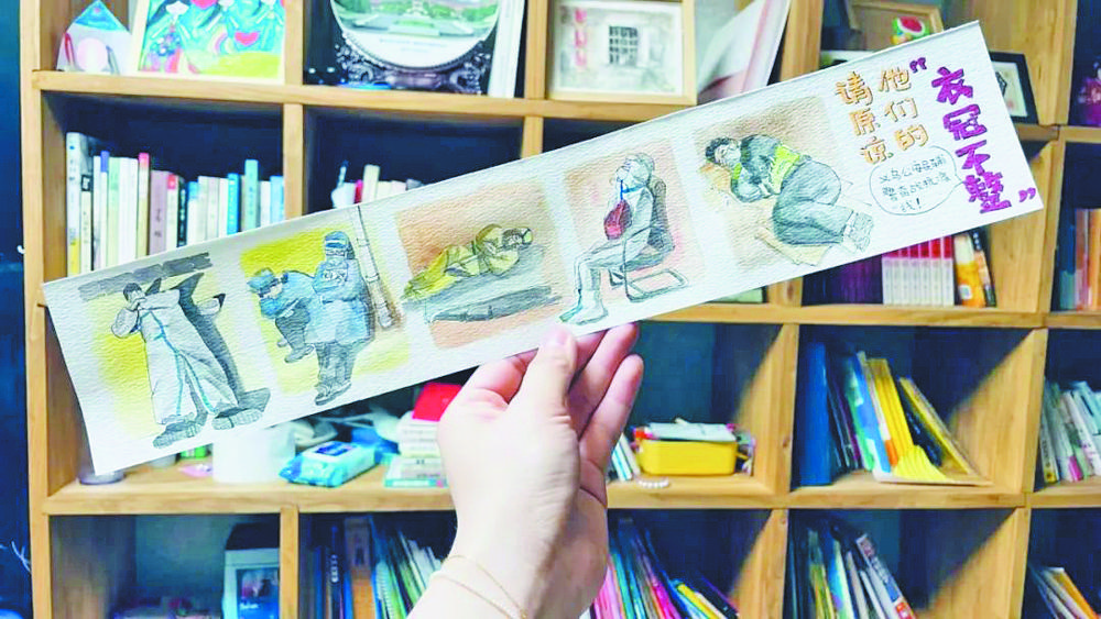 躺著、坐著、靠著、趴著……這兩天,一組手繪作品《請(qǐng)?jiān)徦麄兊摹耙鹿诓徽薄肥斋@了眾多網(wǎng)友點(diǎn)贊。 這組手繪作品出自警嫂張譯丹之手。張譯丹是義烏國(guó)貿(mào)小學(xué)的美術(shù)老師,丈夫是市公安局情指聯(lián)勤中心中隊(duì)長(zhǎng)丁凱。疫情襲來(lái),義烏公安民輔警日夜奮戰(zhàn)在抗疫一線,因值班、抗疫任務(wù)基本不著家,累了就躺地上、坐椅子上、靠著墻睡覺(jué)…… 張譯丹既感動(dòng)又心疼,于是用溫暖細(xì)膩的畫(huà)筆記錄下了義烏公安民輔警的戰(zhàn)“疫”瞬間。 |