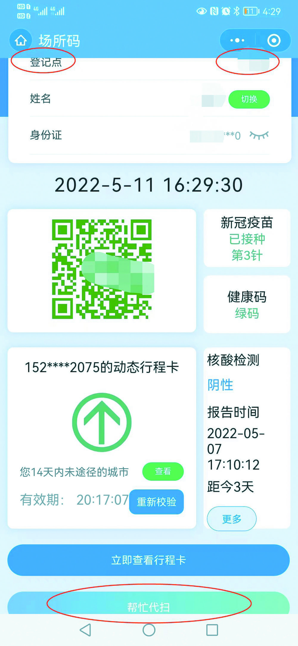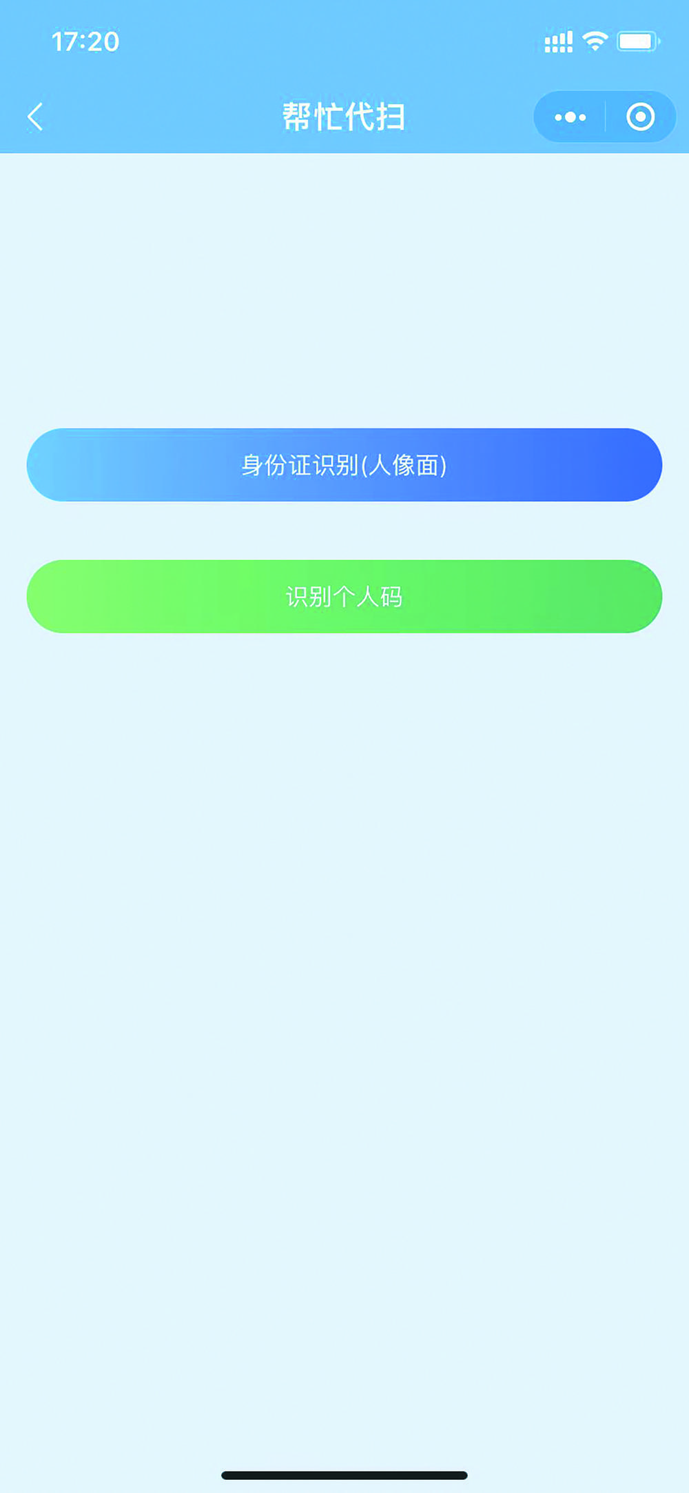 即日起,針對(duì)沒有智能手機(jī)的老人與兒童,親朋好友可以幫其在“義烏防疫”小程序代領(lǐng)“個(gè)人碼”,在進(jìn)入公共場(chǎng)所時(shí),沒有智能手機(jī)的老人與兒童只需要出示“個(gè)人碼”,由同行者或保安代掃,即可顯示場(chǎng)所碼頁(yè)面。 功能一:“個(gè)人碼”代領(lǐng) 步驟1:搜索打開“義烏防疫”微信小程序。 步驟2:選擇個(gè)人碼代領(lǐng)。輸入需申領(lǐng)人的姓名、身份證號(hào)、手機(jī)號(hào)進(jìn)行申領(lǐng),也可拍身份證照片完成申領(lǐng)。 步驟3:完成申領(lǐng)后,長(zhǎng)按圖片或截屏,保存至手機(jī)。也可在“我的”界面,選擇“我代領(lǐng)的個(gè)人碼”查看。老年人、學(xué)生可將個(gè)人碼貼在老年證或校園卡的背面,隨身攜帶。 功能二:幫忙代掃 步驟1:出入場(chǎng)所時(shí),可由家人或場(chǎng)所入口管理員先掃場(chǎng)所碼,出現(xiàn)“五碼合一”界面,登記點(diǎn)名稱為所在場(chǎng)所,再點(diǎn)擊界面最下方的“幫忙代掃”。 步驟2:跳轉(zhuǎn)出現(xiàn)“代掃”界面,點(diǎn)擊“識(shí)別個(gè)人碼”,即可掃描個(gè)人碼;或點(diǎn)擊“身份證識(shí)別”,掃描身份證,功能相同。 步驟3:掃個(gè)人碼或身份證后,會(huì)出現(xiàn)帶有水印“代掃”二字的“五碼合一”界面,登記點(diǎn)與幫掃人員在步驟2中的掃碼登記點(diǎn)一致,即完成幫掃。 |