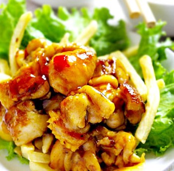 5、甜辣醬下鍋,均勻地裹在雞翅肉上即可。