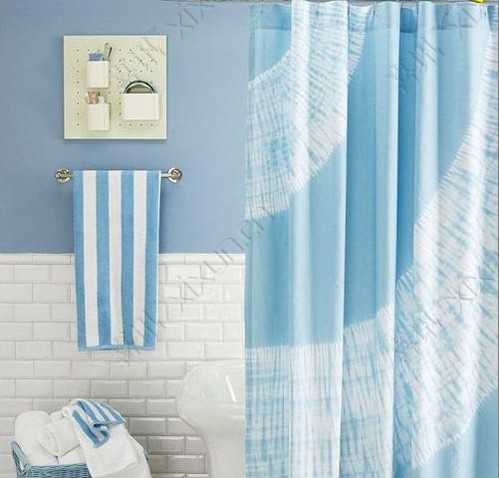 如果浴室粉刷的藍(lán)色的涂料、貼了藍(lán)色或白色的瓷磚,不妨選用淡藍(lán)色系的浴簾。