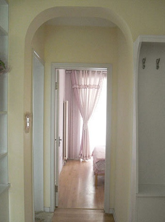小走廊這兒我們做成了弧行,女性的柔美得到體現(xiàn)哈哈~~~~~我們家客餐廳沒(méi)有吊頂,只在四周做了一圈石膏線,考慮到房高太低就沒(méi)做過(guò)多的裝修。