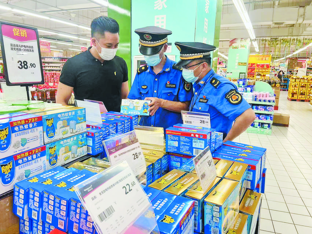 隨著暑期的到來,購買殺蟲劑、蚊香的居民也越來越多。為進一步規(guī)范衛(wèi)生殺蟲劑銷售市場,確保消費者人身安全,連日來,市執(zhí)法局北苑大隊組織人員,對轄區(qū)各超市、商場、農(nóng)貿(mào)市場銷售衛(wèi)生殺蟲劑情況開展專項執(zhí)法檢查。 此次檢查,重點查看相關(guān)商品有無農(nóng)藥登記號、農(nóng)藥生產(chǎn)批準證書號和產(chǎn)品標準號“三證”信息,標簽內(nèi)容與登記內(nèi)容是否一致,產(chǎn)品是否存在已過有效期、標簽標識不規(guī)范、缺失標簽等問題。 |