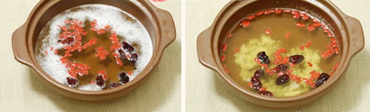 2、將啤酒放入容器里,然后加入枸杞、紅棗,大火煮開;