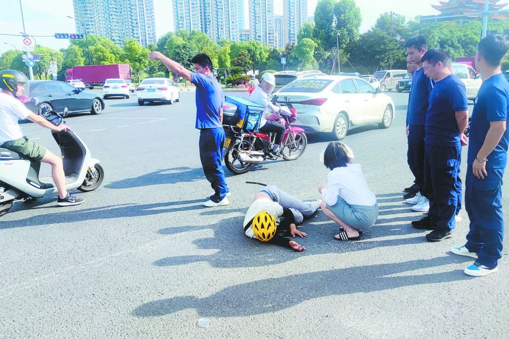 消防員組成一道人墻,為傷者遮陽 炎炎烈日,車禍現場,受傷的外賣小哥躺在車流密集路段無法動彈,幾名消防員飛奔而來,一邊指揮交通,一邊筑起人墻,為傷者守護、遮陽……7月3日,義烏街頭發(fā)生了暖心一幕,受到過往群眾點贊。 當日上午8時左右,江東街道專職消防隊1車7人出勤加油途中,路經南山路和賓王路交叉口時,突然聽到“嘭”的一聲,只見一輛電動自行車與一輛電動汽車相撞,電動自行車上外賣小哥應聲倒地。 “快,停車,下去幫忙!”帶隊干部王敏敏立即組織隊員下車救助。檢查發(fā)現,外賣小哥肩膀和腰部受傷,面部和嘴角均有不同程度出血,一直在痛苦地呻吟。此時,電動汽車上的女司機也慌忙下了車!拔抑皇窍氤弥S燈快點開過去,沒想到……”這名女子聲音發(fā)顫,邊哭邊給家人打電話。 “你先冷靜點,現在最重要的是報警救人!蓖趺裘舭矒崤緳C的情緒,同時讓班長李文龍指揮疏導現場交通。 在陽光的照射下,此時柏油馬路路面溫度正不斷升高。為了避免造成二次傷害,受傷的外賣小哥不能隨意移動。由于一時找不到遮陽的大物件,消防員主動站成一排,組成一道人墻“遮陽傘”,遮擋住刺眼的陽光,并保護傷者的安全。 10分鐘后,120救護車趕到現場,消防員又配合醫(yī)護人員將傷者抬上了救護車。 |