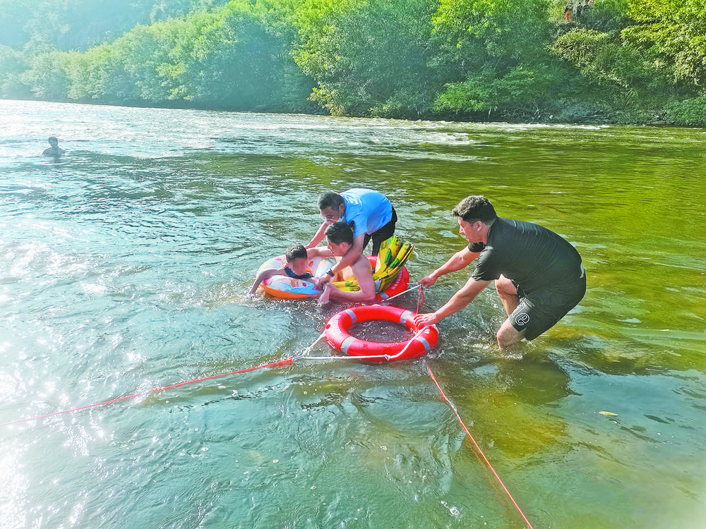 這幾日,氣溫直逼40℃,不少人喜歡結(jié)伴去水邊消暑納涼。南江邊的鐘村段由于水域周?chē)鷾\灘多,很多市民喜歡到此玩水。朱先生被困之處就位于該水域。 “10日下午,我和家人出來(lái)游玩。原本一家人都在淺水區(qū),結(jié)果孩子趁我們不注意獨(dú)自一人跑到了水中間,我趕緊追上去抓住了孩子的手!碑(dāng)時(shí)朱先生光顧著救孩子,沒(méi)注意到江水越來(lái)越深,水流越來(lái)越急,加上腳下石頭又滑,稍有不慎很可能滑倒被水流沖走。于是,朱先生只能緊緊抱著孩子站在水中央呼救,而站在岸邊的家人也是十分著急。 就在此時(shí),佛堂鎮(zhèn)綜治大隊(duì)分隊(duì)長(zhǎng)許劍平等人正在附近勸導(dǎo)巡查。聽(tīng)到有人呼救后,他們立即攜帶救生設(shè)備下水,在數(shù)名熱心群眾的配合下,順利將朱先生父子救上岸。 “南江水域看似淺灘多,其實(shí)部分水深處可達(dá)2米。這兩年,這里一直是溺亡警情高發(fā)處!狈鹛面(zhèn)綜治大隊(duì)大隊(duì)長(zhǎng)葛旭剛說(shuō),自入夏以來(lái),大隊(duì)在該區(qū)域一天至少巡查三次,勸導(dǎo)游客做好嬉水安全防范,提高警惕。 防溺水工作一直是夏季的重點(diǎn)工作,尤其是暑期階段。近期,佛堂鎮(zhèn)組建了防溺水工作專(zhuān)班,多次召開(kāi)工作部署會(huì),成員單位按照任務(wù)分工對(duì)轄區(qū)山塘、水庫(kù)、河流進(jìn)行全面排查,對(duì)警示牌、救生設(shè)施進(jìn)行查漏補(bǔ)缺。 “我們組建了三支隊(duì)伍,分別是由綜治辦、執(zhí)法、學(xué)校力量組成的聯(lián)合勸導(dǎo)隊(duì),每天到重點(diǎn)水域進(jìn)行檢查勸導(dǎo);由各村平安服務(wù)隊(duì)組成的巡邏隊(duì),通過(guò)重點(diǎn)時(shí)段巡邏、設(shè)卡等方式,阻止游客進(jìn)入危險(xiǎn)水域;由監(jiān)管中心、消防站組成的應(yīng)急救援隊(duì),定期到警情多發(fā)水域巡查,及時(shí)應(yīng)對(duì)突發(fā)狀況!狈鹛面(zhèn)相關(guān)負(fù)責(zé)人說(shuō),為加強(qiáng)智能預(yù)警,正在安裝一套南江水位監(jiān)測(cè)預(yù)警系統(tǒng),在水位上漲時(shí)及時(shí)對(duì)下游進(jìn)行廣播提醒,為夏季防溺水安全工作層層加碼。 |
