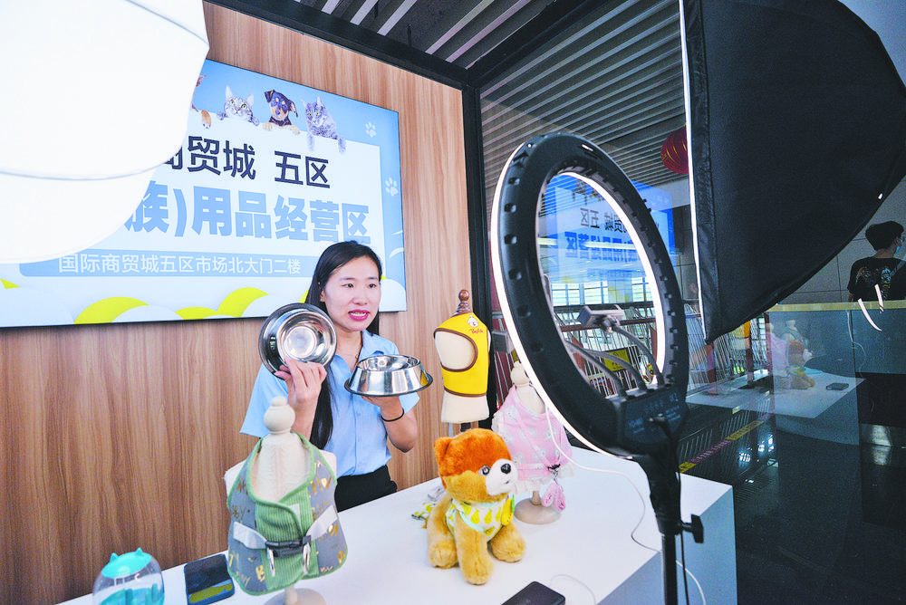 日前,在國際商貿(mào)城五區(qū)寵物用品區(qū)塊的共享直播間,市場(chǎng)商戶正在直播銷售寵物用品。 據(jù)介紹,經(jīng)過多年培育發(fā)展,義烏寵物用品在五區(qū)市場(chǎng)高度集聚,經(jīng)營面積8000平方米,產(chǎn)品遠(yuǎn)銷歐洲、南美、東南亞等地,市場(chǎng)外向度高達(dá)90%,年銷售額預(yù)計(jì)達(dá)20億元,約占全國寵物用品出口總量的10%,是全國集中度最高的寵物用品一站式采購中心。 |