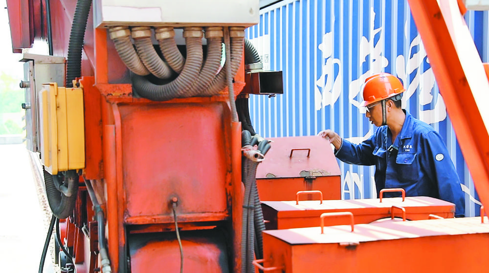 7月18日上午,在驕陽的炙烤下,毫無任何遮擋的義烏鐵路口岸集裝箱堆場,地面溫度已飆升至40攝氏度。42歲的余小昌作為吊裝“義新歐”中歐班列集裝箱的設(shè)備操作員,像往常一樣,仔細(xì)檢查龍門吊設(shè)備,確保這個40多米高的龐然大物安全運作,這關(guān)系到班列能否裝滿貨物準(zhǔn)時出發(fā)。 “油封無問題,剎車制動正!睓z查完畢,汗水早已濕透了余小昌的衣裳。緊接著,他經(jīng)過一段狹窄的樓梯,進(jìn)入不足4平方米的操作室。記者看到,余小昌的操作室四面透光,這是為了保證吊裝集裝箱時視線不受阻擋,考慮到高溫作業(yè),里面配備了一個小空調(diào),但陽光直射下的室內(nèi)還是像個大火爐,悶熱難耐,操作不到10分鐘,他已是汗流浹背。 夏季高溫,為了防止操作人員中暑,每工作一個半小時,余小昌就必須換班一次。 “現(xiàn)在,每天基本要吊裝100多個標(biāo)箱,忙的時候更多!庇嘈〔牟僮魇宜拿娑佳b有玻璃,就連腳下的位置也是透明玻璃,視野很開闊。座椅兩側(cè),分別是一排按鈕和一個操縱桿。平時,余小昌就坐在座椅上,透過腳下的玻璃注視著下方機(jī)械,雙手掌握操縱桿,前后左右移動進(jìn)行集裝箱裝卸作業(yè)。載貨后的集裝箱重量達(dá)30噸,里面的貨物是各種各樣的“義烏制造”。 記者了解到,把集裝箱吊起來,不難,可以依靠機(jī)械自動對準(zhǔn)定位。裝上去,卻不是那么容易。要對齊放準(zhǔn),使集裝箱底的四個角件剛好落在鎖頭位置。有時遇到要裝車的集裝箱在下面壓著,四面被高箱包圍,還要在狹小的空間里,將其小心移出再裝,這確實是個“技術(shù)活”。 干這行,看似簡單,其實不然。用余小昌的話說,要膽大心細(xì)才能做好!安还苁堑孛嫔,還是高空中,操作員都馬虎不得。集裝箱一定要裝好,不然這么大個箱子翻了,后果不敢想象。重箱懸空時,要密切觀察周圍情況,必要時踩鈴提醒下面的工作人員走開。如果聽到機(jī)器操作時發(fā)出的聲音不對,要趕快停下來檢修!庇嘈〔f。 從操作室看向遠(yuǎn)方,風(fēng)景無限好,余小昌卻沒什么時間欣賞,但看著一趟趟烙有“義新歐”中歐班列標(biāo)識的列車緩緩駛離,他的心情總是格外舒暢。 據(jù)統(tǒng)計,“義新歐”中歐班列目前已開通17個方向的點對點國際鐵路貨運直達(dá)班列線路,業(yè)務(wù)范圍輻射境外50多個國家和160多個城市,開行規(guī)模和質(zhì)量走在全國前列。2022年上半年,“義新歐”中歐班列共開行808列,發(fā)運66700標(biāo)箱,同比增長9.5%。數(shù)據(jù)增長的背后,是無數(shù)像余小昌一樣的“鐵路人”的默默付出。 |