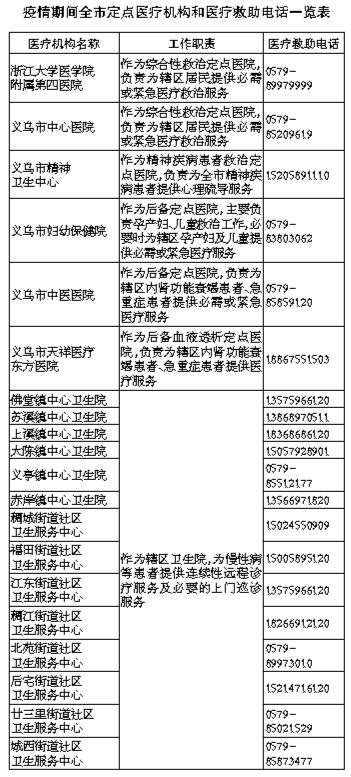 義烏市公布疫情期間 定點(diǎn)醫(yī)療機(jī)構(gòu)和醫(yī)療救助電話