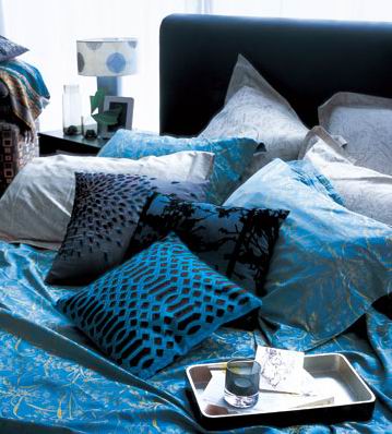 深淺不一的藍色,曾經代表著憂郁和冷靜的情緒,而金色的葉脈圖案在藍色的襯托中沒有了張揚,卻為藍色平添了一份高貴與溫暖。巧妙地搭配,令奢華變成身邊最近也最真實的成分。那層疊之中孕育的一絲溫暖,恰到好處地展現著一份與眾不同的奢華。