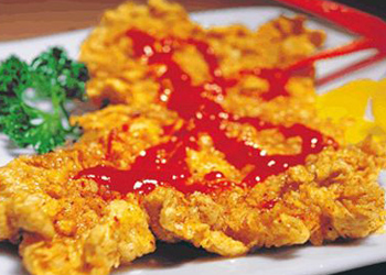 4、鍋內放寬油,油7成熱時依次下入雞排,炸至定型后撈出;