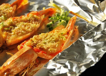 原料: 冰鮮對(duì)蝦6只、蔥姜蒜、橄欖油、料酒、鹽。 做法: 1、冰鮮海蝦自然解凍,剪去蝦搶和蝦須; 2、用剪刀沿蝦的脊背處剪開至蝦尾,用牙簽剔除蝦腸; 3、用刀把蝦肉縱向切開,但不要全部切斷,然后展開,再橫向拍一下蝦肉; 4、用鹽和料酒涂抹蝦肉,腌制10分鐘; 5、把蔥姜蒜剁成茸拌在一起,添加一勺橄欖油攪拌均勻; 6、將蝦平展鋪在烤盤內(nèi)的錫紙上,將拌好的蔥姜末均勻攤平在蝦背上; 7、烤箱中層,200度上下火,烤約15分鐘即可。 |