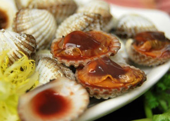 2、坐鍋燒水,水開后,用網(wǎng)漏把血蛤放入開水中燙8——10秒鐘取出;