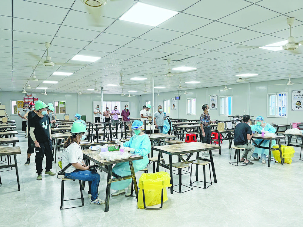 “大家間隔一米排好隊,提前把健康碼打開。”在現(xiàn)場,工地生活區(qū)食堂成了臨時采樣室,桌上整齊地擺放著采樣試管、棉簽、消毒酒精等物品,四名醫(yī)護人員分別負(fù)責(zé)信息登記和采樣。廿三里街道建設(shè)辦的相關(guān)工作人員也趕來現(xiàn)場,檢查督導(dǎo)工地防疫措施是否規(guī)范到位。 截至早上7點,該項目工地737位建筑工人均完成采樣。工人們紛紛表示,工地非常重視疫情防控工作,上門采核酸很方便。項目負(fù)責(zé)人成子昌說:“考慮到工人多、天氣熱,在廿三里街道的協(xié)調(diào)下,醫(yī)護人員上門采樣,給我們提供了方便。今天是正式復(fù)工第一天,我們將在落實好常態(tài)化疫情防控措施的同時,保質(zhì)保量緊抓項目進度! “一定要按防疫要求,確保每名工人都要做核酸。”廿三里街道建設(shè)辦工作人員一邊叮囑工地負(fù)責(zé)人做好人員防疫,一邊對工地人員出入、施工車輛進出工地的消殺記錄臺賬進行檢查。工作人員表示:“根據(jù)疫情防控要求,各建設(shè)項目均實行72小時核酸檢測,送核酸采樣進工地,能讓大家安心復(fù)工! 據(jù)了解,廿三里街道轄區(qū)內(nèi)目前有35個在建工地,均已實現(xiàn)復(fù)工。街道建設(shè)辦分組、分時走訪各工地,對工地是否按疫情防控要求落實疫情防控措施、防疫物資是否準(zhǔn)備充分、人員核酸檢測是否完成等情況進行檢查,同時對高溫下的安全生產(chǎn)工作進行督查,確保在建工地防疫與建設(shè)兩不誤。 |