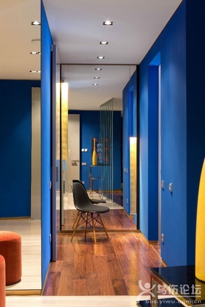這間色彩濃郁的公寓位于俄羅斯,由Yuri Zimenko設(shè)計(jì)打造。公寓使用了高飽和度的色彩,帶來強(qiáng)烈的視覺沖擊。對(duì)比強(qiáng)烈的色彩搭配,選擇稍淺色彩的小飾品混搭,減少強(qiáng)烈對(duì)比帶來的突兀感。復(fù)古氣息與現(xiàn)代風(fēng)格的撞擊,給居室?guī)碡S富多彩的視覺感受。