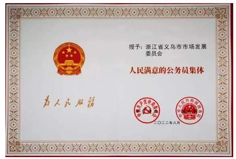 昨日(8月30日),全國(guó)“人民滿意的公務(wù)員”和“人民滿意的公務(wù)員集體”表彰大會(huì)在京舉行,來(lái)自全國(guó)各地的397名個(gè)人和198個(gè)集體接受表彰。其中,義烏市市場(chǎng)發(fā)展委員會(huì)榮獲全國(guó)“人民滿意的公務(wù)員集體”稱號(hào)。