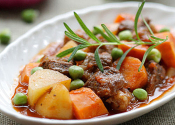 原料: 牛腩500克、紅番茄2個(gè)、洋蔥一個(gè)、土豆2個(gè)、胡蘿卜1根、青豌豆100克、番茄醬150克、茶葉一小把、姜、料酒、八角和香葉適量。 調(diào)料: 橄欖油30ML,紅酒20L、黑胡椒粉5克、干迷迭香碎3克、羅勒3克、鹽適量。 做法: 1、將新鮮牛腩洗凈后切成塊,放入沸水中,加茶葉、鹽、姜、料酒、八角和香葉大火煮至牛肉軟爛;撈起瀝干水分備用; 2、將番茄、洋蔥、土豆、胡蘿卜洗凈,切成塊備用; 3、鍋中放入橄欖油,7成熱后倒進(jìn)番茄片,加鹽翻炒,直到將番茄炒成醬;放入牛肉,炒干其水份; 4、放入番茄、洋蔥、土豆、胡蘿卜、青豌豆,翻炒均勻;加入淹沒(méi)材料的沸水; 5、加入番茄醬、紅酒、干迷迭香碎、羅勒、黑胡椒、鹽大火煮開(kāi),湯汁燒至濃稠即可。 |