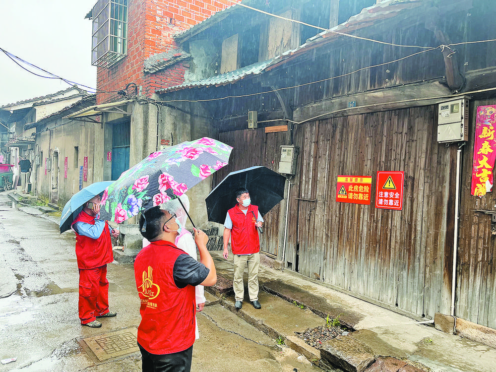 各村社對(duì)隱患點(diǎn)開(kāi)展排查。 昨日中午11時(shí),據(jù)中央氣象臺(tái)消息,“軒嵐諾”再度增強(qiáng)為“超強(qiáng)臺(tái)風(fēng)”。為應(yīng)對(duì)臺(tái)風(fēng)影響,我市各鎮(zhèn)街、部門未雨綢繆,提前行動(dòng),開(kāi)展各項(xiàng)防臺(tái)準(zhǔn)備工作。大陳鎮(zhèn):深入一線筑牢防臺(tái)“安全堤” “老樓,這邊幾個(gè)大的獼猴桃大棚都要加固下,這兩天受臺(tái)風(fēng)影響,可能會(huì)有大到暴雨!边B日來(lái),大陳鎮(zhèn)農(nóng)辦發(fā)動(dòng)人員對(duì)在建工地、農(nóng)業(yè)設(shè)施、山塘水庫(kù)等進(jìn)行實(shí)地走訪檢查,有序推進(jìn)防汛防臺(tái)工作。尤其是幾家獼猴桃基地,工作人員還幫助農(nóng)戶一起疏通渠道、加固大棚,確保即將成熟的獼猴桃能安全度過(guò)臺(tái)風(fēng)天。 據(jù)悉,為做好臺(tái)風(fēng)“軒嵐諾”防御工作,大陳鎮(zhèn)防汛防臺(tái)抗旱指揮部和鎮(zhèn)紀(jì)委對(duì)各村(居)防臺(tái)防汛工作進(jìn)行嚴(yán)格督查檢查,確保防汛工作關(guān)口前移,強(qiáng)化預(yù)警響應(yīng)聯(lián)動(dòng)。 大陳鎮(zhèn)通過(guò)微信平臺(tái)、手機(jī)短信等途徑實(shí)時(shí)發(fā)送臺(tái)風(fēng)預(yù)警信息和相關(guān)防范要求;各村(居)組織黨員對(duì)現(xiàn)存的老舊房屋進(jìn)行貼標(biāo)警示,加快對(duì)危舊房居住人員的轉(zhuǎn)移避險(xiǎn)工作;各區(qū)域組織人員查看山體邊坡防護(hù)網(wǎng),拆除河道兩側(cè)防護(hù)網(wǎng),排查山洪隱患;大陳鎮(zhèn)專職消防隊(duì)組織消防救援人員對(duì)抗擊臺(tái)風(fēng)的裝備器材車輛進(jìn)行全面“體檢”,確保各類器材完整好用。 據(jù)統(tǒng)計(jì),截至昨日下午5時(shí),大陳鎮(zhèn)各村(居)檢查人數(shù)共計(jì)930余人次,共排查地質(zhì)災(zāi)害點(diǎn)風(fēng)險(xiǎn)點(diǎn)56處、河道60公里,勸導(dǎo)搬離老舊房居住人員38人,共疏通河道阻水點(diǎn)17處,對(duì)12處小流域山洪點(diǎn)、465處老舊房屋、91處山塘水庫(kù)等風(fēng)險(xiǎn)隱患點(diǎn)開(kāi)展巡查檢測(cè)。 蘇溪:提升“人防+技防”預(yù)警能力 昨日,蘇溪鎮(zhèn)提前研判,嚴(yán)陣以待,切實(shí)做好防臺(tái)防汛應(yīng)急預(yù)案,在地質(zhì)災(zāi)害隱患風(fēng)險(xiǎn)點(diǎn)上安裝傳感器,確保地質(zhì)災(zāi)害險(xiǎn)情早發(fā)現(xiàn)早處理,提升“人防+技防”預(yù)警能力。 “有了這個(gè)‘防御神器’,我們就可以第一時(shí)間了解隱患點(diǎn)情況,及時(shí)采取相應(yīng)措施,最大限度地避免人員傷亡和財(cái)產(chǎn)損失!碑(dāng)天上午9時(shí)許,在蘇溪鎮(zhèn)塘里蔣村的地質(zhì)災(zāi)害隱患點(diǎn),蘇溪鎮(zhèn)國(guó)土所工作人員方堅(jiān)強(qiáng)指著安裝在山體上地質(zhì)災(zāi)害監(jiān)測(cè)預(yù)警系統(tǒng)傳感器介紹道。 據(jù)了解,“防御神器”是近期蘇溪鎮(zhèn)在有人員居住的地質(zhì)災(zāi)害隱患風(fēng)險(xiǎn)點(diǎn)上新安裝的地質(zhì)災(zāi)害監(jiān)測(cè)預(yù)警系統(tǒng)傳感器,它可以形成全鎮(zhèn)地質(zhì)災(zāi)害檢測(cè)網(wǎng)絡(luò),實(shí)時(shí)監(jiān)測(cè)隱患點(diǎn)的災(zāi)害變化,并將地質(zhì)災(zāi)害監(jiān)測(cè)納入全鎮(zhèn)的公共安全事件檢測(cè)平臺(tái)上,有效對(duì)隱患點(diǎn)發(fā)布預(yù)警提醒。 “我們巡查時(shí)通過(guò)肉眼只能看到一些較大的變化,而這個(gè)傳感器可以精準(zhǔn)的測(cè)算一定時(shí)間內(nèi)土壤和石層的形變,如果超過(guò)正常范圍,它就會(huì)發(fā)送預(yù)警信息到工作人員的手機(jī)上。”方堅(jiān)強(qiáng)說(shuō),依托該地質(zhì)災(zāi)害監(jiān)測(cè)預(yù)警系統(tǒng),讓災(zāi)害風(fēng)險(xiǎn)防治從過(guò)去的單一人防、被動(dòng)處置、經(jīng)驗(yàn)判斷,向提前預(yù)判、精準(zhǔn)“智治”轉(zhuǎn)變,有效提升了防范化解地質(zhì)災(zāi)害風(fēng)險(xiǎn)隱患的能力。 據(jù)悉,目前蘇溪鎮(zhèn)已經(jīng)在外渭水塘村、塘里蔣村、金峰寺等7個(gè)地質(zhì)災(zāi)害隱患風(fēng)險(xiǎn)點(diǎn)安裝了傳感器。 福田街道:打好防汛防臺(tái)“主動(dòng)仗” 福田街道“防”字當(dāng)頭,嚴(yán)陣以待,迅速啟動(dòng)防汛應(yīng)急預(yù)案,周密部署防汛救災(zāi)工作。街道班子成員往來(lái)穿梭于轄區(qū)各個(gè)村社、易澇點(diǎn)之間,督查指導(dǎo)防汛防臺(tái)準(zhǔn)備工作,將各項(xiàng)工作落實(shí)、落實(shí)、再落實(shí)。 福田街道在建工程、山塘水庫(kù)多,還存在著地勢(shì)相對(duì)低洼的老舊小區(qū)、路段,一到強(qiáng)降雨天氣,很容易造成積水。為此,福田街道組織轄區(qū)44個(gè)村社全體黨員干部組成防汛救災(zāi)工作隊(duì),全面開(kāi)展巡查防護(hù),加強(qiáng)防汛避險(xiǎn)宣傳。在東青溪和洪溪支流,防汛救災(zāi)工作隊(duì)仔細(xì)檢查兩處易澇點(diǎn)排水設(shè)施通暢情況,要求社區(qū)動(dòng)態(tài)排查整治易澇點(diǎn)問(wèn)題,提升排水能力,確保支流水位在安全線內(nèi);對(duì)在建工程、低洼區(qū)域、危房危墻、臨時(shí)搭建物等再排查、再研判,及時(shí)消除安全隱患;穿巷入戶,加強(qiáng)防汛避險(xiǎn)宣傳,對(duì)重點(diǎn)區(qū)域群眾進(jìn)行登記造冊(cè)