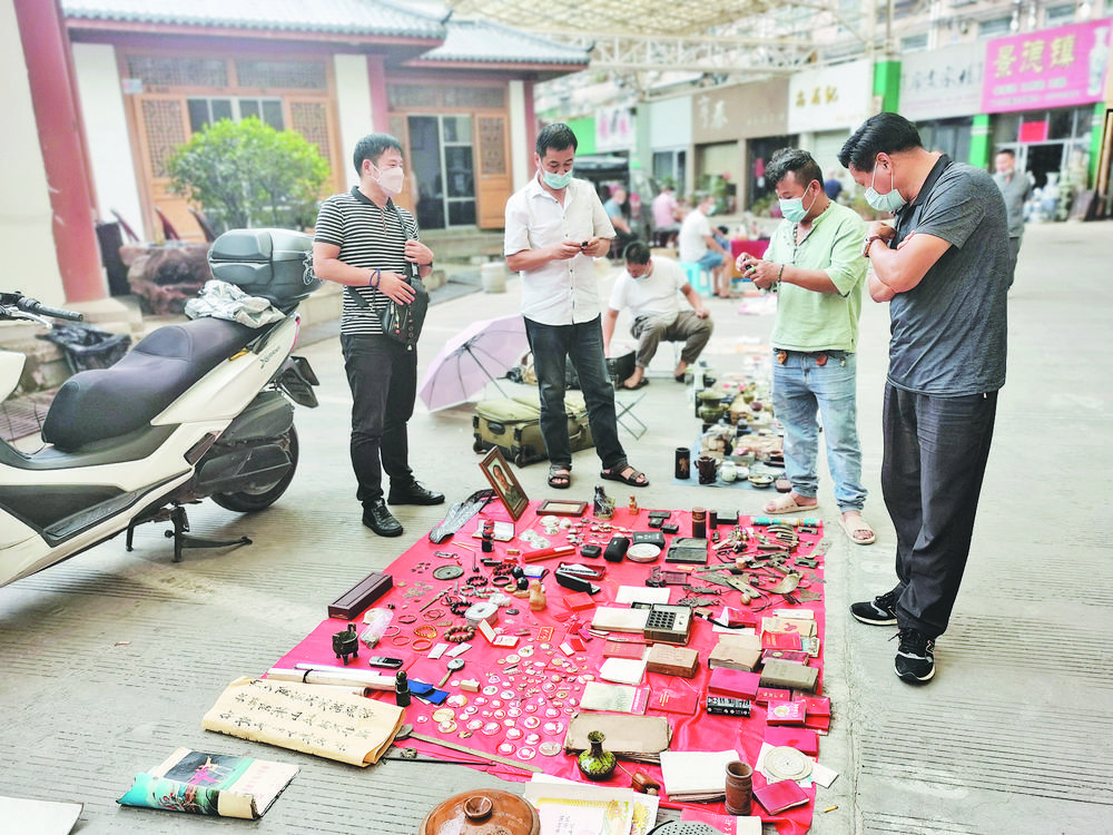 : 經(jīng)歷近一個(gè)月停擺后,9月3日,義烏收藏品市場地?cái)偧小盎貧w”。當(dāng)天,300多個(gè)地?cái)傄蛔峙砰_,展示玉器、錢幣、書畫等各類收藏品,吸引數(shù)千人次前往鑒賞、購買。