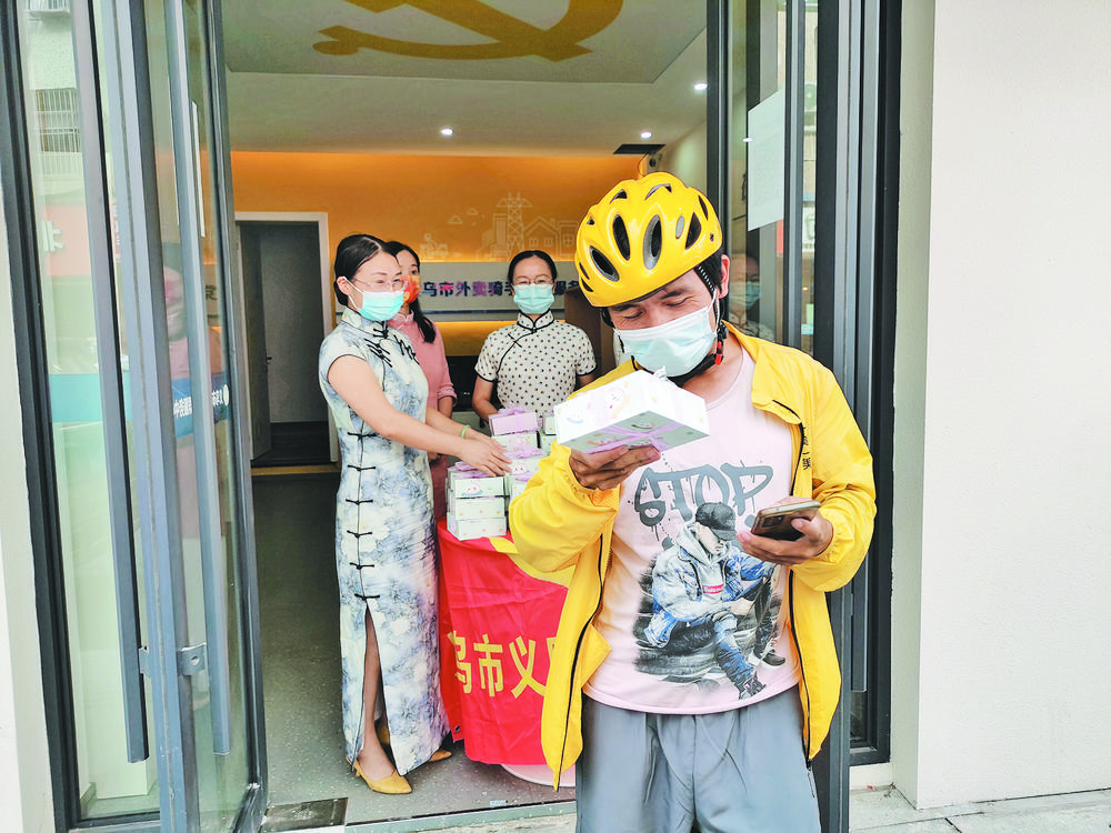 “這是我們剛做的手工月餅,送給你們嘗個鮮,提前祝中秋節(jié)快樂!”9月5日下午4時左右,在位于義駕山的外賣騎手綜合服務(wù)點,數(shù)名稠城街道賓王社區(qū)的工作人員和志愿者將一盒盒包裝精美的月餅送給路過的外賣小哥。 當(dāng)天,義烏市義暖志愿服務(wù)隊和賓王社區(qū)聯(lián)合開展了一場題為“義烏有愛 情暖中秋”的主題活動。志愿者和城市工作者一起動手,現(xiàn)場制作各種餡兒的月餅,待成品完成并包裝好后,再親手送到外賣小哥手中。 “從中午開始跑了好多單,有點累,想來這里歇一下緩口氣,沒想到,還有人給我們送月餅,很驚喜,也很感動!眮碜园不盏目爝f小哥老萬走進(jìn)服務(wù)點,在沙發(fā)上坐下休息了十幾分鐘,一口氣喝了大半瓶水,還用快充給手機(jī)充了電。 稠城街道轄區(qū)餐飲、商超等第三產(chǎn)業(yè)高度集中,在推動義烏繁榮發(fā)展的同時,也催生了一大批以“網(wǎng)上注冊、平臺派單、線下干活”為主業(yè)的新就業(yè)群體。在成為服務(wù)居民生活、助力城市發(fā)展的一支重要力量的同時,這個群體也成為黨建引領(lǐng)基層治理急需打通的“神經(jīng)末梢”。 為持續(xù)推動更多普惠性服務(wù)向新業(yè)態(tài)新就業(yè)群體全面延伸,切實增強(qiáng)他們的歸屬感和職業(yè)認(rèn)同感,今年以來,稠城街道積極行動,多措并舉,深化黨建統(tǒng)領(lǐng)、數(shù)字賦能,將新就業(yè)群體納入推進(jìn)現(xiàn)代社區(qū)建設(shè)工作范疇。除了啟動首屆騎手節(jié)、成立護(hù)“騎”聯(lián)盟、上線“騎”聯(lián)盟紅色地圖等行動外,街道還因地制宜開辟外賣騎手綜合服務(wù)點。 短暫的停歇,是為了更好地出發(fā)。據(jù)了解,位于賓王社區(qū)的這個綜合服務(wù)點,主要以外賣騎手群體為服務(wù)對象,旨在為他們的工作和生活提供一些便利。從現(xiàn)場來看,一樓為休閑場所,進(jìn)門右邊擺放著飲水機(jī),可免費提供熱水;左邊則是休息用餐區(qū)和更衣室,外賣小哥可以在這個區(qū)域吃飯、看電視、給手機(jī)充電,也可以在這里換上自己的騎手工作服。沿著咨詢臺后面的樓梯而上,二樓分別開辟了相對獨立的涉及法律援助、技能培訓(xùn)、心理輔導(dǎo)等服務(wù)場所,主要用于幫助外賣小哥維權(quán)及相關(guān)知識的培訓(xùn)宣傳。 “在這里,外賣小哥累了可以歇歇腳,渴了喝口水、餓了熱下飯、給手機(jī)充個電,也可以根據(jù)自己的愛好和時間參加技能培訓(xùn),而這一切都是免費的!背沓墙值老嚓P(guān)負(fù)責(zé)人表示,希望外賣小哥來這里能找到回“家”的感覺,感受到這座城市的善意和暖意,產(chǎn)生更多的歸屬感和幸福感。 |