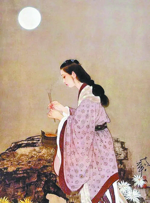 從時令上說,中秋是“秋收節(jié)”,春播夏種的谷物但凡到了秋天就該收獲了。古代的人們在這個季節(jié)會飲酒起舞,喜氣洋洋地慶祝豐收,附庸風(fēng)雅的文人墨客們也會對月飲酒作詩。 “今人不見古時月,今月曾經(jīng)照古人!备邞倚强盏哪且惠喦镌拢娮C著華夏大地?cái)?shù)千年的文明延續(xù),也見證著一代又一代炎黃子孫的自強(qiáng)不息。千百年來,人們在八月十五的月光下,度過了一個又一個中秋節(jié)。 春秋 關(guān)于中秋節(jié)的起源由來、傳統(tǒng)習(xí)俗等,在互聯(lián)網(wǎng)上有大量的文字史料,表述或略有不同,但內(nèi)容大同小異。 據(jù)說,中秋節(jié)起源于我國古代秋祀、拜月之俗,“中秋”一詞最早出自《周禮》,其中載有“中秋夜迎寒”“秋分拜月”之俗。大意為,這一天,帝王會通過舉行拜月等祭典活動,來祈禱來年的豐收。而在民間,每個村的老百姓會將收獲的果品糧食放在一起舉行祭祀活動,以此答謝神祇的護(hù)佑,也有稱之為“秋報(bào)”。后來祭月逐漸為賞月所替代,中秋被賦予了新的內(nèi)涵。 《禮記·月令》中提到,“仲秋之月養(yǎng)衰老,行糜中秋節(jié)粥飲食!备鶕(jù)相關(guān)記載推測,中秋節(jié)的起源有兩種說法:一種說是源于古代帝王的祭祀活動!疤熳哟撼,秋夕月”,據(jù)說這里的“夕月”就是祭月亮,說明早在春秋時代,帝王就已有祭拜月亮之舉了,之后隨著達(dá)官貴人和文人學(xué)士的紛紛仿效,開始逐步傳到民間。還有一種說法是中秋的起源和農(nóng)業(yè)生產(chǎn)有關(guān)。八月中秋,農(nóng)作物和各種果品陸續(xù)成熟,農(nóng)民為慶祝豐收,表達(dá)喜悅的心情,就以“中秋”這天作為節(jié)日。 魏晉 到了魏晉南北朝,月亮不僅僅是高高在上的祭拜對象,還作為一種精神寄托的意象走進(jìn)人們的尋常生活。 這個時期的文人雅士,開始將秋日所思所想寄托在那一輪明月之上,借月抒情,表達(dá)自己的千般惆悵、萬般思緒。東晉時,高士謝尚、袁宏于中秋之夜泛舟江上,吟詩賞月,有了“牛渚玩月”這一賞月佳話,引得時人紛紛效仿,以至演化為千百年來廣大人民群眾樂以歡度的中秋佳節(jié)。 “秋風(fēng)入窗里,羅帳起飄飏。仰頭看明月,寄情千里光!边@是出自南北朝佚名的《子夜四時歌·秋風(fēng)入窗里》。用白話文來詮釋,大意為秋風(fēng)從窗子吹進(jìn)屋子來,窗簾隨著風(fēng)飄了起來,皎潔的月光灑滿閨房,喚起了思婦柔柔的情懷。仰頭看著當(dāng)頭的浩然明月,想起了出征在外的親人,心中充滿了無奈與憂傷,多么希望這皎潔的月光能把心中融融的相思之情寄給遠(yuǎn)在他鄉(xiāng)的親人。明月千里寄相思,相隔兩地的親人(戀人)由于空間的距離讓思念之情更加濃烈。 漢 漢代是我國南北各地的經(jīng)濟(jì)文化交流融合時期,各地文化上的交流使節(jié)俗融合傳播。有說法稱,中秋節(jié)普及于漢代,開始出現(xiàn)在中秋或立秋之日舉行以賜餅為主的敬老、養(yǎng)老活動。由于當(dāng)時釀酒技術(shù)逐漸成熟,每逢佳節(jié)飲酒已成為一種不可少的慶祝手段。 據(jù)相關(guān)文史記載,士大夫們在漢朝時,已形成祭月的風(fēng)尚。不過,這個時期的“中秋”并沒有成為固定的節(jié)日。 唐 到了唐朝這個特別愛好月亮的朝代,上流社會興起了在月色最好的八月十五賞月的風(fēng)尚,且與團(tuán)圓、鄉(xiāng)愁有著綿密的聯(lián)系。至中晚唐,中秋賞月已是全民習(xí)俗。 詩人們也樂于用浪漫的辭藻,抒發(fā)情感,這其中,又以詩仙李白為代表。面對清冷的月色,詩人寫出“花間一壺酒,獨(dú)酌無相親。舉杯邀明月,對影成三人”的佳句,還感慨“小時不識月,呼作白玉盤。又疑瑤臺鏡,飛在青云端!薄按睬懊髟鹿,疑是地上霜。舉頭望明月,低頭思故鄉(xiāng)!边@首傳誦至今的《靜夜思》更是經(jīng)久不衰,童叟皆知。 除了文人吟詩作對外,民間還流傳著幾則唐玄宗的趣聞傳說。據(jù)說,唐玄宗在八月十五日晚上做了一個夢,夢見自己跟隨道士一起來到月宮,看見里面的仙女正聞樂起舞;实郾惑@艷到,夢醒后立即作了《霓裳羽衣曲》,成了一段千古佳話。 另外一個傳說是,有一年的中秋,唐玄宗與楊貴妃正賞月吃餅。忽然,皇帝突發(fā)感慨:“胡餅,胡餅,餅雖好吃,名字難聽!鄙平馊艘獾臈钯F妃想了一會兒,指著天上皎潔的月亮說道:“中秋,賞月,吃團(tuán)圓餅,不如就把這種餅稱為月餅吧!”皇帝聞此言立刻拍手叫好,下令把這種帶餡的小胡餅稱作月餅。 當(dāng)然,傳說終歸是傳說,聽聽而言,一笑而過。從一些影視劇的播放片段來看,中秋這天,皇帝會領(lǐng)著皇室成員祭祀先輩,到了晚上則大擺筵席,而民間往往也是一番團(tuán)圓景象。 值得一提的是,據(jù)說這個朝代的官員在中秋是可以放假的,或有三天之多。 宋 直到宋代,中秋作為歲時節(jié)令才正式形成并在民間盛行。專家認(rèn)為,北宋正式定八月十五為中秋節(jié),并出現(xiàn)了“小餅如嚼月,中有酥和飴”的節(jié)令食品——月餅。據(jù)說,唐時的月餅多為烤制,宋人比較喜歡細(xì)膩的口感,所以這時的月餅大多是蒸出來。 如果說唐朝的八月十五是一個賞月節(jié),那么到了宋代,中秋賞月的風(fēng)氣則達(dá)到高潮。這個朝代的中秋節(jié)相對更接地氣,有一種普遍的嫻雅風(fēng)度和親近自然的情懷。無論社會中上
