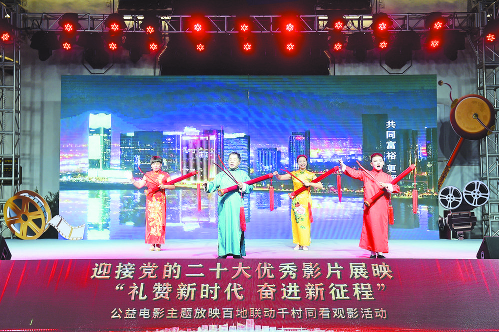 觀影活動(dòng)表演 迎接黨的二十大優(yōu)秀影片展映——“禮贊新時(shí)代 奮進(jìn)新征程”公益電影主題放映百地聯(lián)動(dòng)千村同看觀影活動(dòng),于昨日在分水塘村陳望道故居正式啟動(dòng)。活動(dòng)由中央宣傳部電影數(shù)字節(jié)目管理中心、中共浙江省委宣傳部、浙江省電影局主辦,中共金華市委宣傳部、中共義烏市委、浙江新農(nóng)村數(shù)字電影院線有限公司承辦;顒(dòng)在“學(xué)習(xí)強(qiáng)國(guó)”學(xué)習(xí)平臺(tái)進(jìn)行了全程同步直播。據(jù)悉,該活動(dòng)將通過放映展播黨的十九大以來優(yōu)秀電影作品,用光影力量引導(dǎo)廣大群眾親身體驗(yàn)感悟新時(shí)代發(fā)展變化,激勵(lì)干部群眾傳承紅色基因、賡續(xù)紅色血脈,教育引導(dǎo)青少年知史愛黨、知史愛國(guó),以實(shí)際行動(dòng)迎接黨的二十大勝利召開。 當(dāng)天的活動(dòng)現(xiàn)場(chǎng),除舉行簡(jiǎn)樸的啟動(dòng)儀式外,還與淳安下姜村、余姚橫坎頭村、舟山普陀螞蟻島村等浙江省內(nèi)10個(gè)農(nóng)村放映點(diǎn)進(jìn)行了視頻連線。這10個(gè)農(nóng)村放映點(diǎn)的分布地區(qū),既有革命老區(qū),也有平原、山區(qū)和海島,充分展示了農(nóng)村電影放映深受浙江群眾喜愛和熱在基層、熱在群眾、熱在青少年的濃厚氛圍。接下來,浙江全省各地將按照工作部署,積極有序推進(jìn)和深化迎接黨的二十大優(yōu)秀影片公益放映活動(dòng)。 啟動(dòng)儀式上,浙江省委宣傳部、省電影局宣布了“浙影通”農(nóng)村電影放映數(shù)字化改革場(chǎng)景全省貫通使用!罢阌巴ā鞭r(nóng)村電影放映場(chǎng)景深入貫徹浙江省委數(shù)字化改革理念要求,大力推動(dòng)農(nóng)村電影放映工作流程再造、系統(tǒng)重塑,把觀影選擇權(quán)、話語(yǔ)權(quán)、評(píng)價(jià)權(quán)交給群眾,讓農(nóng)村群眾“看電影、看到好電影”不再難。通過部分地區(qū)前期試用,目前通過“浙影通”放映電影總數(shù)已達(dá)到1.5萬余場(chǎng)次,其中群眾點(diǎn)播放映比例超過50%。 現(xiàn)場(chǎng)還組織了觀影活動(dòng),為義烏群眾送上難忘的光影體驗(yàn),受到大家歡迎。 |
