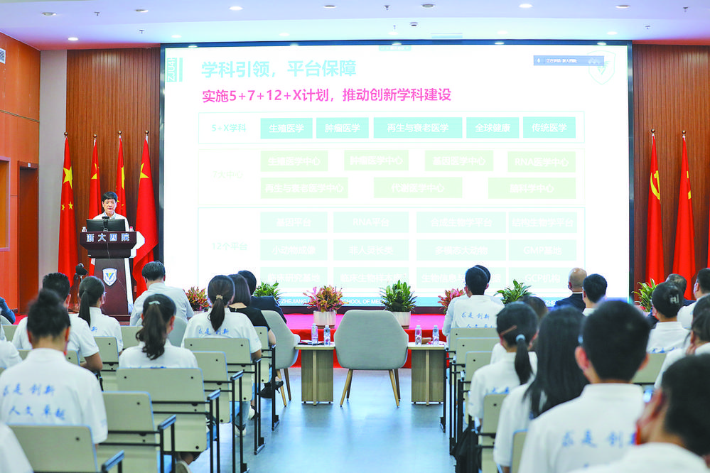 據(jù)悉,今年是浙江大學(xué)“一帶一路”國際醫(yī)學(xué)院首次面向海外招生。巴基斯坦籍ALI KAMRAN、津巴布韋籍Tashinga Walter Matiki等6名外籍學(xué)員成為了2022級新生。“義烏是‘一帶一路’重要節(jié)點城市,是展示中國文化自信的窗口。選址義烏雙江湖畔的國際醫(yī)學(xué)院,不僅是醫(yī)學(xué)教研的承擔(dān)者,也是國際優(yōu)勢資源交流的平臺!闭憬髮W(xué)“一帶一路”國際醫(yī)學(xué)院相關(guān)負(fù)責(zé)人介紹,學(xué)院于2020年開始招錄研究生,招生數(shù)量逐年上升,目前有在讀全日制研究生363名,包括國內(nèi)博士研究生55名,外籍博士研究生5名,國內(nèi)碩士研究生302名,外籍碩士研究生1名。 依托與浙江大學(xué)國際健康醫(yī)學(xué)研究院、浙江大學(xué)醫(yī)學(xué)院附屬第四醫(yī)院“三院一體”的發(fā)展模式,浙江大學(xué)“一帶一路”國際醫(yī)學(xué)院將力爭打造國際化、高水平、研究型的高等醫(yī)學(xué)教育機(jī)構(gòu)。目前,浙江大學(xué)“一帶一路”國際醫(yī)學(xué)院一期工程的教學(xué)樓、體育中心、行政樓等均已進(jìn)入二層結(jié)構(gòu)施工,學(xué)生宿舍樓開始進(jìn)場粉刷,預(yù)計明年9月校園正式啟用。 |