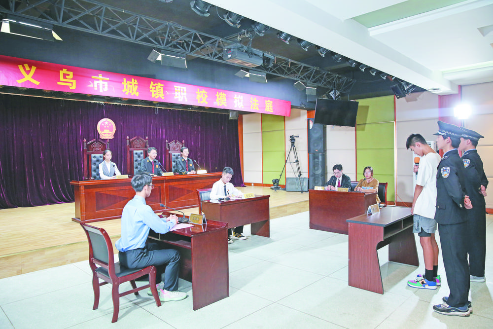 “模擬法庭”現(xiàn)場 日前,義烏市檢察院聯(lián)合義烏市城鎮(zhèn)職校,通過線下結(jié)合網(wǎng)絡(luò)直播的形式開展法治教育課,將模擬法庭“開”進(jìn)校園,讓義烏市城鎮(zhèn)職校5000余名師生同上生動(dòng)的法制教育課,用生動(dòng)的模擬代替刻板的說教,讓普法更有新意。 據(jù)了解,本次活動(dòng)以創(chuàng)新“開學(xué)第一課”的法治教育方式,將“我講你聽”變成“我引導(dǎo)你主導(dǎo)”,由中職學(xué)生參與打造沉浸式模擬法庭,讓法律更立體地呈現(xiàn)在師生眼前。 “模擬法庭”開庭前,檢察官們精心編寫模擬案例劇本,制作預(yù)案模板;學(xué)校教師為學(xué)生安排角色并讓學(xué)生熟悉案例,同時(shí)分組培訓(xùn)了“審判長”“書記員”“公訴人”“辯護(hù)人”等角色,參訓(xùn)學(xué)生按照擬制出庭預(yù)案,由“檢察官教練組”進(jìn)行審核,并補(bǔ)充完善。 活動(dòng)當(dāng)天,中職生們穿著檢察制服、法官袍、律師服落座進(jìn)入各自角色,“法警”帶“被告人”進(jìn)入“法庭”。隨著一聲清脆有力的法槌聲,一場以校園傷害事件為題材的“模擬法庭”正式開庭!巴彙边^程緊張有序,“公訴人”“辯護(hù)人”就案件的定性展開激烈辯論,“合議庭”穩(wěn)控全場,“被告人”陳述事實(shí),“法警”維護(hù)“庭審”秩序,各司其職。 “庭審”結(jié)束后,義烏市檢察院副檢察長黃攀峰對“模擬法庭”作了專業(yè)點(diǎn)評與普法宣講。 此次“模擬法庭進(jìn)校園”活動(dòng)打破了以往較為單一的校園普法宣傳形式,以生活中真實(shí)發(fā)生過的校園傷害案件為原型,通過案例分析、庭審的形式,將法條人性化、內(nèi)容條理化。學(xué)生們通過與庭審現(xiàn)場零距離接觸,感受到法律的莊重威嚴(yán)、公平公正,進(jìn)一步增強(qiáng)了對法律知識的理解能力和運(yùn)用能力。 “一次‘庭審’便是一堂生動(dòng)的法治教育課。”義烏市城鎮(zhèn)職校執(zhí)行校長陳安表示,通過分析案例對學(xué)生進(jìn)行法治教育,不僅增強(qiáng)了學(xué)生的自我保護(hù)意識,同時(shí)也鍛煉了學(xué)生的社會(huì)適應(yīng)能力,提高了他們分析判斷、辨別是非的能力,從而引導(dǎo)更多的學(xué)生去關(guān)注法律,學(xué)法、懂法、守法、用法,做一名真正的合格的法治公民。 |