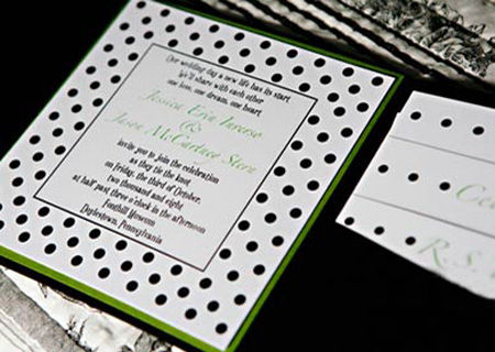 波爾卡圓點(diǎn),從上世紀(jì)五十年代風(fēng)靡至今,以活潑歡快之感大受歡迎。在時(shí)裝界刮起波點(diǎn)復(fù)古風(fēng)的時(shí)候,做為一名不折不扣的波點(diǎn)控新人,你有沒有想到,將波點(diǎn)作為你婚禮的靈感,來一場創(chuàng)意非常的波點(diǎn)婚禮呢? 雅致、復(fù)古的波點(diǎn)蛋糕 這樣的蛋糕你一定沒見過吧!間隔地使用波點(diǎn),在體現(xiàn)主題的同時(shí),達(dá)到舒適、驚艷的視覺效果。沒有什么不能做出來的,只要你能想到。 手捧花也波點(diǎn) 手捧花也許不能做出波點(diǎn)的設(shè)計(jì),但是你可以在捆綁手捧花的絲帶上做文章。黑底白點(diǎn)的絲帶很容易找到,巧妙地纏繞在花枝上,頓時(shí)個(gè)性起來。 細(xì)致到桌次的席位卡 采用和請柬類似的設(shè)計(jì),更簡潔、小巧,將客人的姓名和桌號印在中央,在簽到臺領(lǐng)取,方便客人尋找桌次。 趣味波點(diǎn)請柬 擺脫傳統(tǒng)請柬的花紋設(shè)計(jì),圓點(diǎn)邊框的設(shè)計(jì)增加趣味。在紙片最外圈,綠色和黑色搭配組成2層線框,打破黑白的簡單,非常時(shí)髦。 |