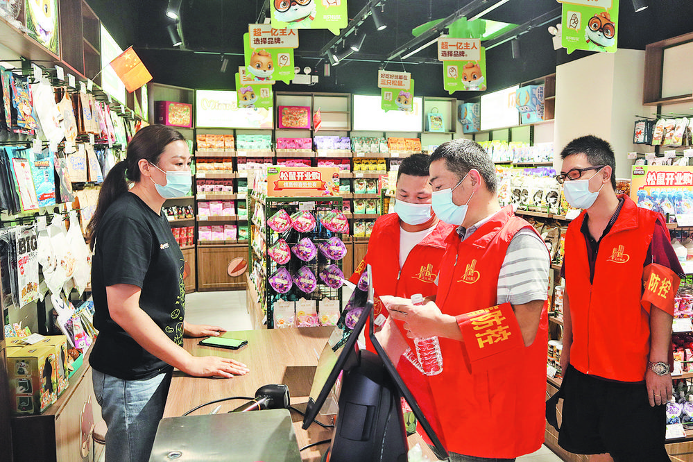 “紅色巡邏隊(duì)”在萬達(dá)廣場內(nèi)巡查。 10月3日上午,稠江街道萬達(dá)廣場內(nèi),一組組身著“紅色馬甲”的巡查隊(duì)出現(xiàn)在商場的各店鋪內(nèi),他們是永祥社區(qū)黨員和稠江街道科室人員,正對疫情防控常態(tài)化措施落實(shí)情況開展督導(dǎo)檢查。在鳳凰社區(qū),社區(qū)黨員聯(lián)合火鳳凰志愿者們,助力巡查沿街店鋪、卡口測溫亮碼;在興業(yè)社區(qū),身著“紅馬甲”的黨員與街道建設(shè)辦工作員走街串巷進(jìn)行防疫知識宣傳;在云驛小鎮(zhèn),官塘共建委也組織黨員巡查隊(duì)在各快遞物流企業(yè)廠區(qū)、沿街店面等巡查,將檢查問題交辦給各網(wǎng)格,并落實(shí)閉環(huán)整改……當(dāng)天,除了在永祥社區(qū),“紅馬甲”的身影也同樣出現(xiàn)在稠江的農(nóng)村和社區(qū),他們用行動(dòng)踐行著初心使命,筑起一道道疫情防控的“紅色防線”。 國慶長假期間,人員流動(dòng)、聚集風(fēng)險(xiǎn)凸顯,疫情防控工作面臨更大考驗(yàn)。為此,稠江街道落實(shí)“疫情要防住、經(jīng)濟(jì)要穩(wěn)住、發(fā)展要安全”的要求,街道機(jī)關(guān)干部重心下移、力量下沉,把疫情防控措施落實(shí)到一線。稠江街道相關(guān)負(fù)責(zé)人介紹說,街道各級黨組織廣泛發(fā)動(dòng)轄區(qū)黨員、志愿者等組建“紅色巡查隊(duì)”,按照常態(tài)化疫情防控工作相關(guān)要求,分組分時(shí)間段,在轄區(qū)內(nèi)開展疫情防控、除險(xiǎn)保安巡查。與此同時(shí),街道各科室黨員干部也按照統(tǒng)一部署,迅速下沉結(jié)對社區(qū),與社區(qū)工作人員并肩作戰(zhàn)。 據(jù)悉,面對流動(dòng)人口多、業(yè)態(tài)復(fù)雜等問題,稠江街道強(qiáng)化網(wǎng)格黨組織作用發(fā)揮,注重把黨員巡查隊(duì)力量編入網(wǎng)格,有序有效引導(dǎo)各方力量共同守護(hù)“微網(wǎng)格”平安。并推廣實(shí)行每日巡查任務(wù)清單、檢查問題反饋清單和每日會商制度等“兩清單一會商”機(jī)制,有效提高巡查實(shí)效!凹t色巡查隊(duì)”根據(jù)清單任務(wù)對轄區(qū)內(nèi)的重點(diǎn)場所進(jìn)行實(shí)地督導(dǎo)檢查,將每日巡查到的問題匯總到巡查反饋單里,與社區(qū)一并進(jìn)行統(tǒng)籌會商,并進(jìn)行整改閉環(huán)管理。據(jù)統(tǒng)計(jì),當(dāng)前,稠江街道已有4000余人次的黨員和志愿者主動(dòng)到社區(qū)報(bào)到并開展巡查,將疫情前哨設(shè)置在網(wǎng)格中,全力筑牢疫情防控屏障。 |