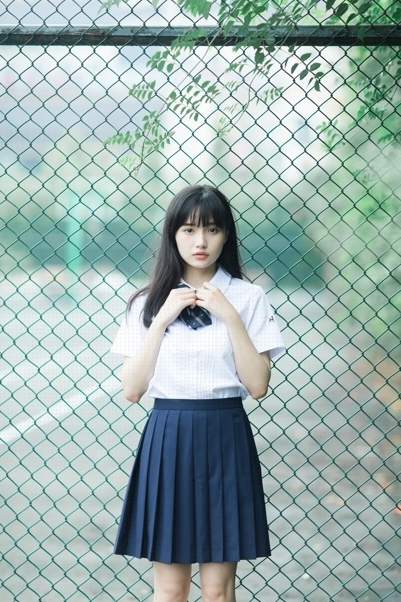 白襯衣迷你短裙嫩白肌膚劉海美女