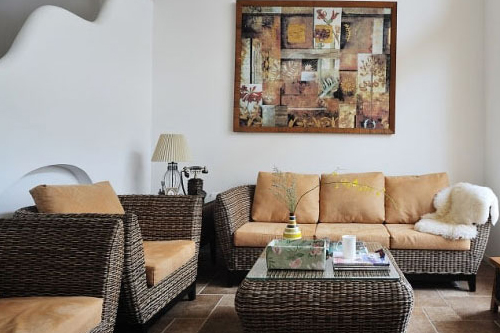 編輯點(diǎn)評(píng):日本人講究禪意,淡泊寧靜,臥室里裝飾畫當(dāng)然少不了,一副實(shí)木框抽象畫對(duì)日式家居的打造很有畫龍點(diǎn)睛之用,藤制的沙發(fā),讓家居充滿自然的味道。