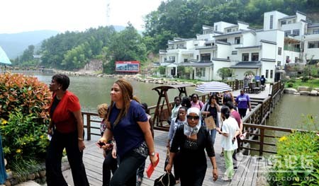 5月27日,10余個非洲國家的20位女官員、女議員,來到我市城西街道何斯路村參觀。那一幢幢錯落有致的別墅嵌在青山綠水中,看不到一丁點垃圾的村路,芳香襲人的植被風景,讓遠道而來的非洲客人留戀忘返。