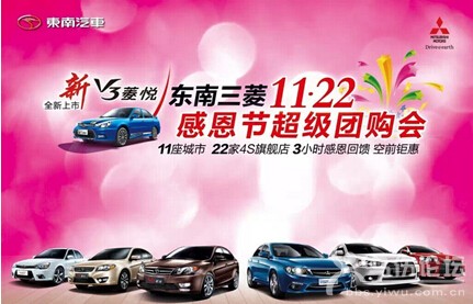 11月22日東南三菱裸價狂奔 轟動全城 11月22日,東南三菱聯(lián)合11座城市22家旗艦店上演感恩節(jié)超級團購會!感恩回饋,空前鉅獻,引爆全省,僅限活動現(xiàn)場3小時!凡是通過網(wǎng)絡報名者都有100元的手機充值卡或精美毛毯一份 ...