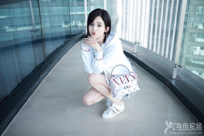 古力娜扎干練迷人短發(fā)白膚大長腿嘟嘴